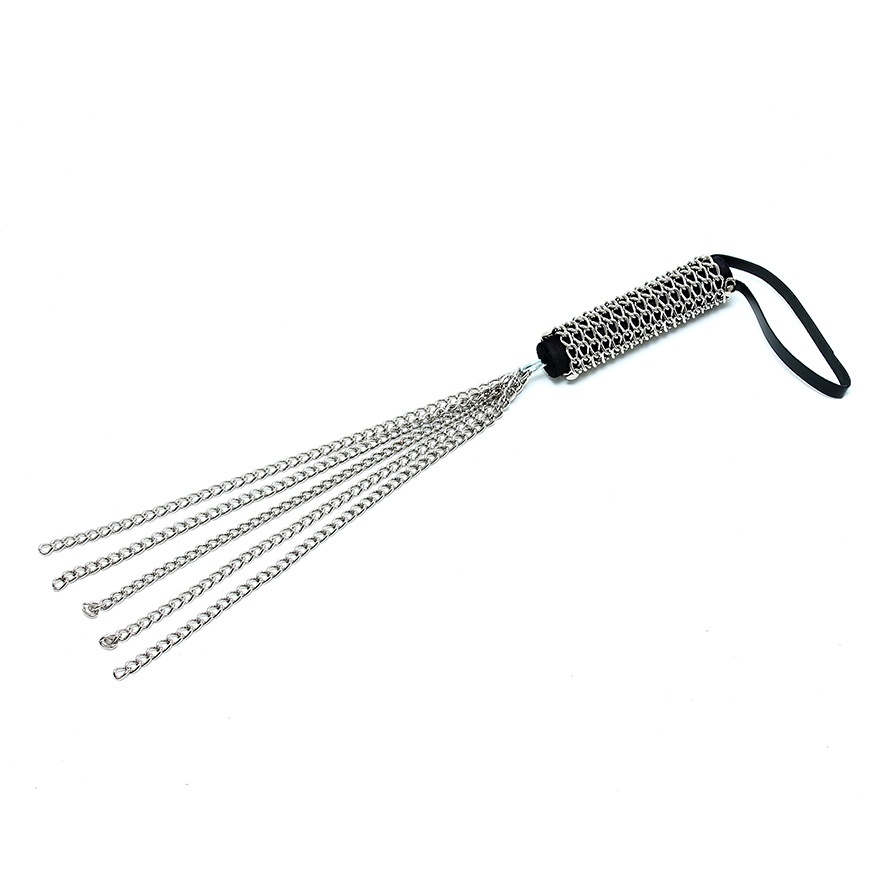 Heavy chain whip with 5 tails, Handle 5.5 Inches x 1.5 inches, Tails 13 Inches.