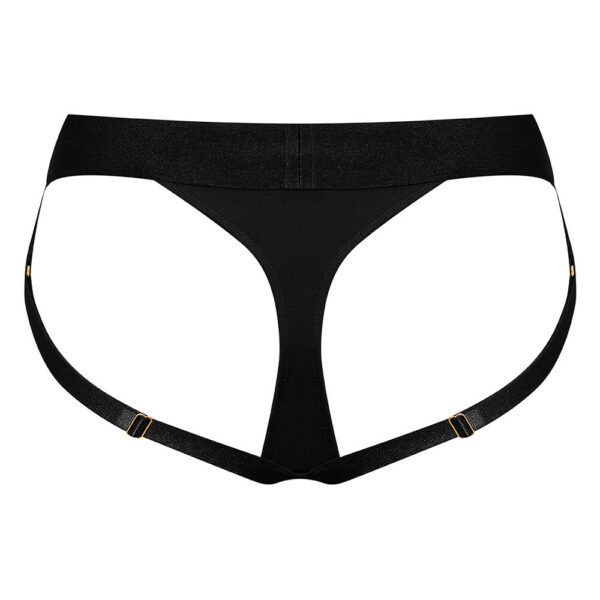 From the front, this harness looks simple and comfortable with its elastic waistband and second skin design. When viewed from the back, the Heroin is transformed into chic and sexy lingerie with its adjustable straps.
